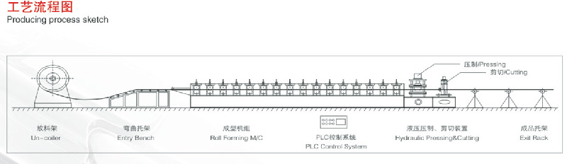 9、機(jī)組包括:成型主機(jī)、液壓站、放料架、成型剪、控制箱、出料架。