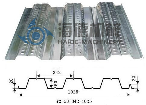 該機(jī)生產(chǎn)的鋼樓承板形狀簡(jiǎn)潔、波度大、強(qiáng)度高、安裝時(shí)鋪置點(diǎn)焊鋼筋網(wǎng)后與混凝土現(xiàn)場(chǎng)澆灌結(jié)合,粘合性好。在高層建筑上既可以省去鋼模板又可以減輕樓層承載,在達(dá)到同等承受能力的前提下,使工程用鋼量減少,從節(jié)省投資。